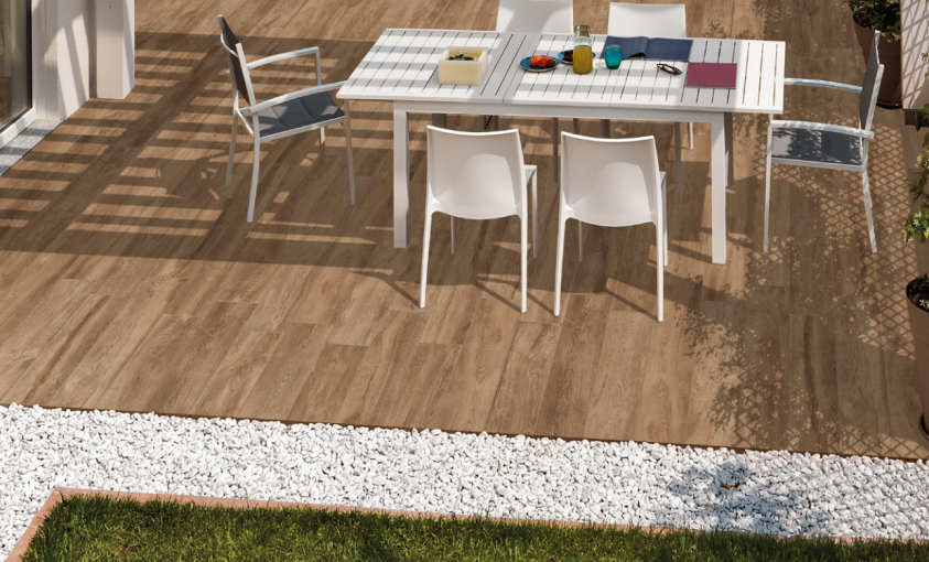 Il est possible d'avoir les mêmes nuances entre carreaux d'intérieurs et carreaux extérieurs permettant ainsi d'avoir une continuité entre l'espace de vie de la maison et la terrasse.